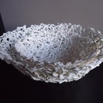 application à la poire ... ) La matière est cuite à haute température (entre 1200° et 1250°C selon la pièce). Le papier contenu dans la pâte est consumé dans la cuisson. Reste une